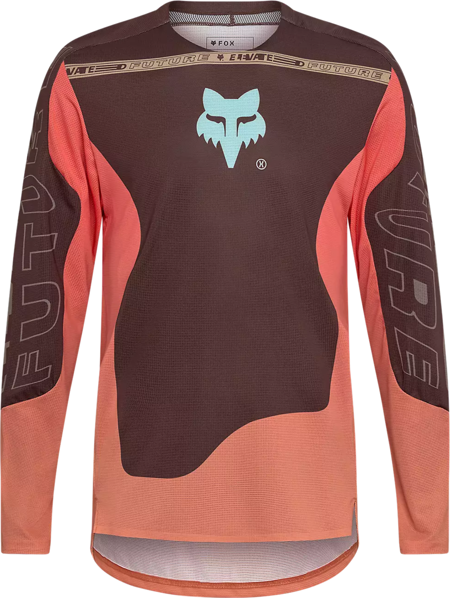 Elevated fabrics, patterns and color blocking informed by race graphics—that's Elevated Future. When you're ripping through that gnarly overgrown trail, the Flexair Elevated Long Sleeve Jersey is right there with you bringing some legendary Fox energy and performance to your trail exploration. It's got that sought-after Flexair breathability to keep you cool, TruDri® sweat-wicking ability to keep you dry, and construction details that'll ensure total mobility as you shred at blur speed.